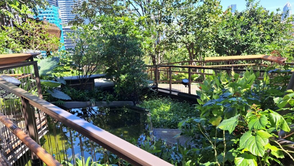 高低差を活かした独特の空間が更に広さと散策時の心地よさを広げています。ベンチに腰掛けて緑を眺めたり、写真を撮りながらゆっくり歩いたりと、思い思いの過ごし方ができ、高層ビルの屋上とは思えないほど自然を感じられる、バンコクでも新感覚のおすすめ新スポットです。