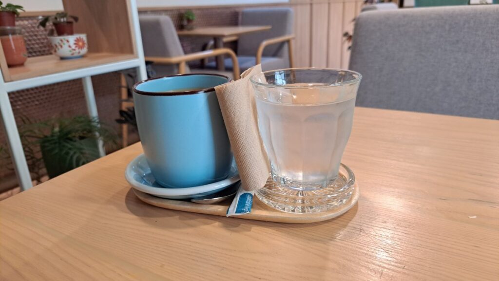 オーダーしたコーヒーです。出し方がオシャレです。コーヒーも苦味がしっかり感じられる美味しいコーヒーでした。