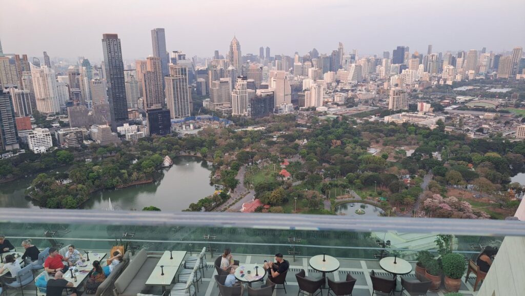 スパイアルーフトップバーは明るい時間帯や夕暮れ時に行くのも素敵です。バンコクの高層ビル群や眼下に見えるルンビニー公園を昼間の明かりで見ることもでき、夕暮れ時、日没時の雰囲気もまた一つ変わった雰囲気で素敵です。