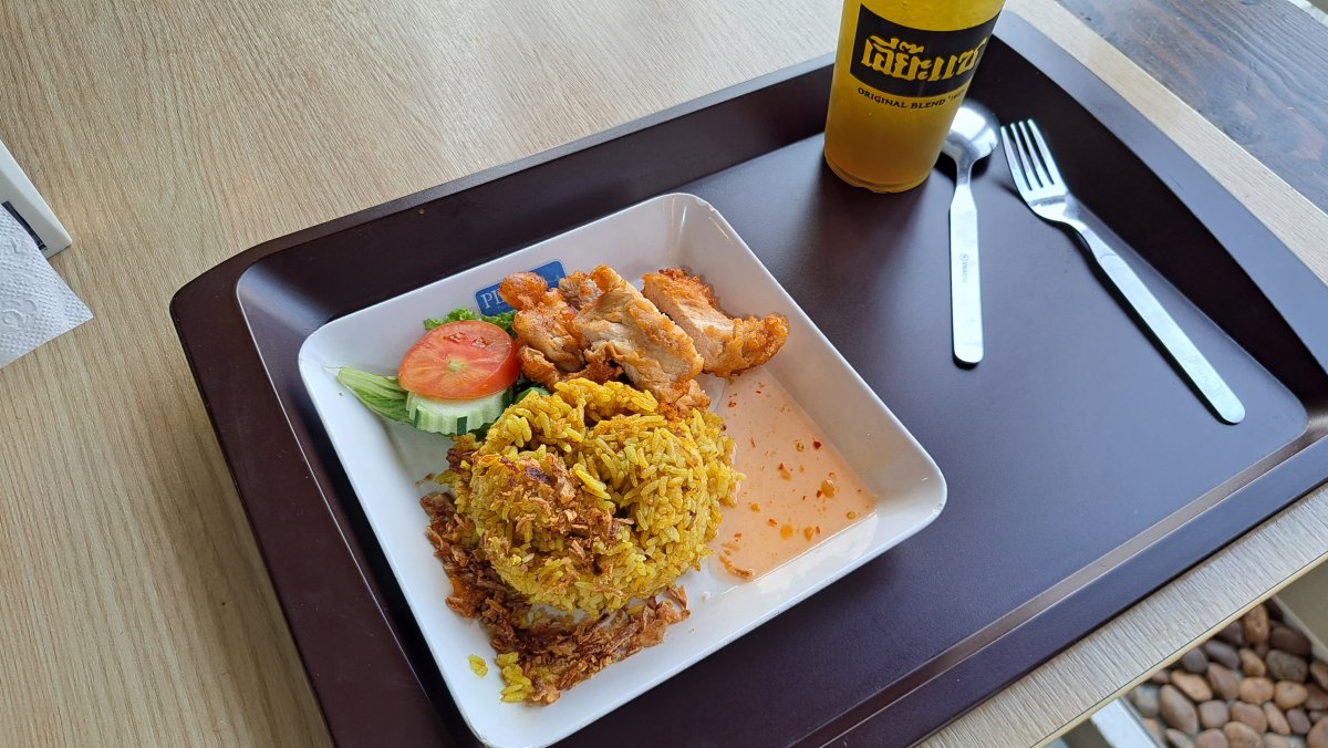 カオマンガイは一見、量が少なそうに見えますが、これだけで十分おなか一杯になるボリュームです。それでも大人の男性だと少し物足りない(もうちょっと食べたい)と思うかもしれません。その時は、帰りにカードに残っているチャージでフルーツセットを買って近くのテーブルで食べて帰るのもおすすめです。